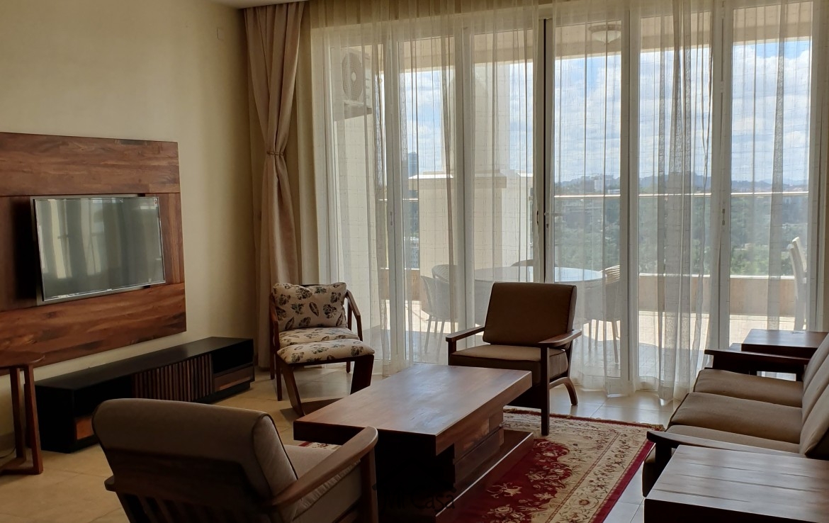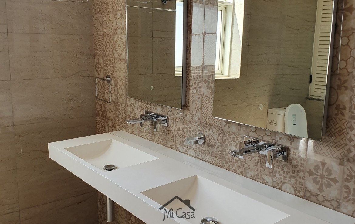 • A Large master bedroom with an en-suite bathroom, double vanity sinks, bathtub, air conditioning, Flat screen TV and a large balcony with scenic views of the city